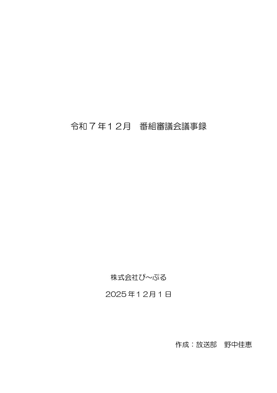 令和7年12月番組審議会議事録